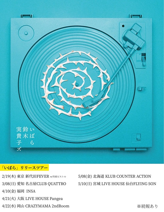 トップページ > 公演スケジュール > 公演情報詳細 鈴木実貴子ズ 「いばら」リリースツアー 2026/05/10(日) 開場16:30|開演17:00 LIVE HOUSE 仙台FLYING SON 会場情報 券種・料金 スタンディング ¥4,000 ※入場時ドリンク代別途必要 ※小学生以下入場不可/中学生以上チケット必要 2/2 23:59まで受付中 一般発売 発売詳細未定 お問い合わせフォーム:https://www.gip-web.co.jp/t/info※平日10:00~18:30対応※2~3営業日お時間を頂戴する場合がございます。※ドメイン指定受信、メール指定受信ご利用の方は、「@tayori.com」の受信設定をお願いいたします。※1週間以上お待ちいただいても返答がない場合は、受信設定を変更していただくか、別のアドレスから再度ご連絡ください。 ツイート